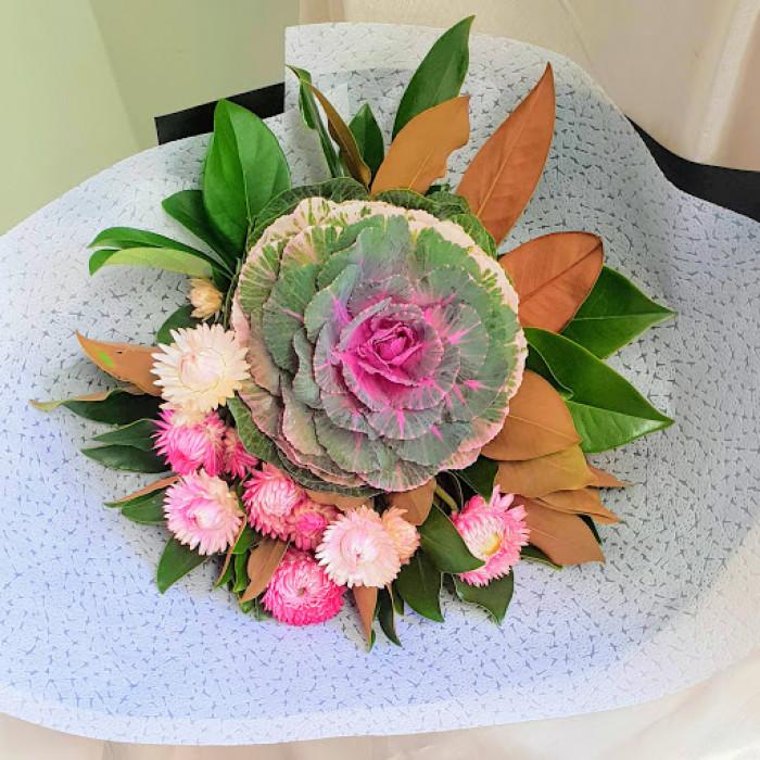 Yeah baby this luscious purple ornamental kale arrangement is a winter flower sensation. Make the most of these gorgeous unusual blooms while they are in season. Here we have our luscious kale teamed with some seasonal blooms in a bed of luscious green leaves. And at a bargain basement price to boot . Order today for next day delivery!