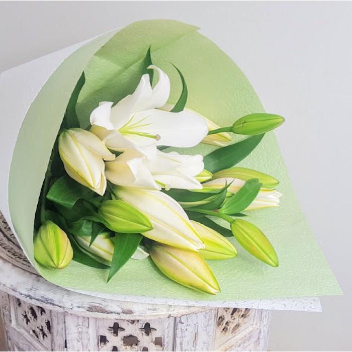 A perennial favourite, these perfumed white oriental lilies are available as a bouquet or in a vase idea for any occasion, or as a sympathy offering, this elegant arrangement is a bit of an understated all-rounder. Order today for next day delivery